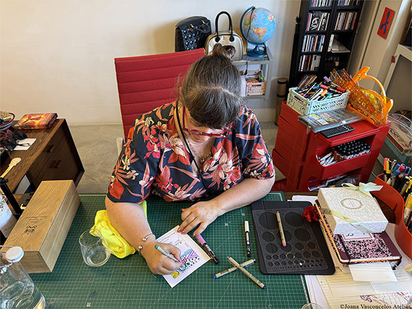 Joana Vasconcelos travaillant sur le dessin créé pour l’étiquette de Château Mouton Rothschild 2023